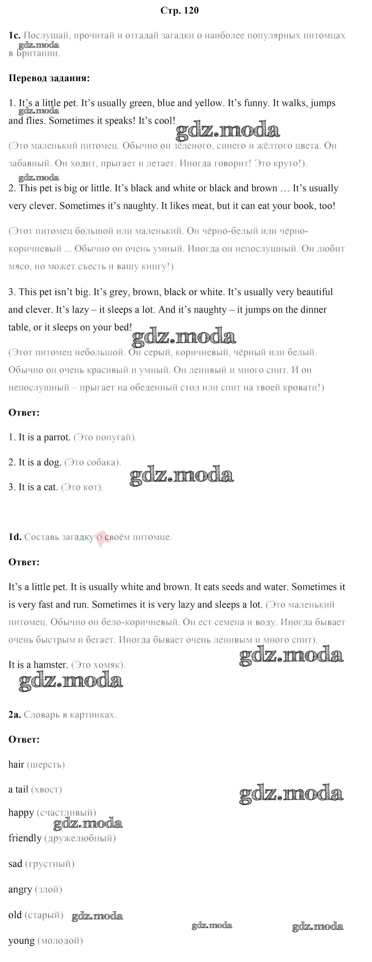ГДЗ решение к заданию № 120 Английский язык 4 класс Лапицкая Л.М. Высшая школа 2019 Часть 1, Часть 2 ФГОС бесплатно на гдз.мода!