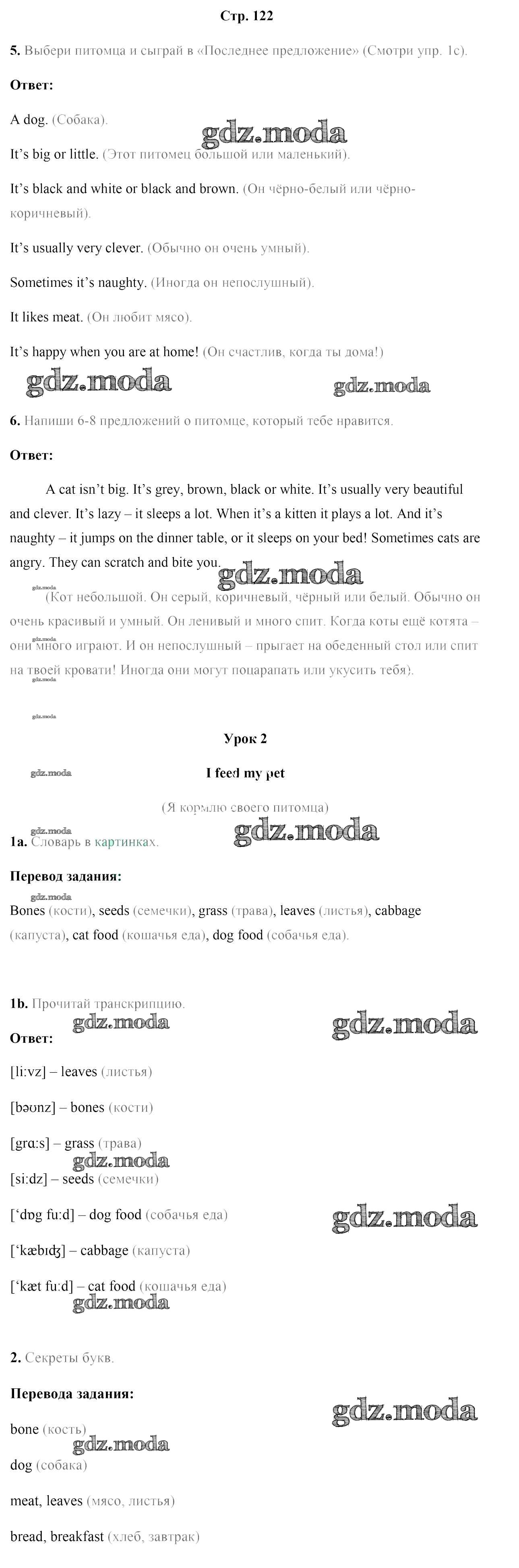 ГДЗ решение к заданию № 122 Английский язык 4 класс Лапицкая Л.М. Высшая школа 2019 Часть 1, Часть 2 ФГОС бесплатно на гдз.мода!
