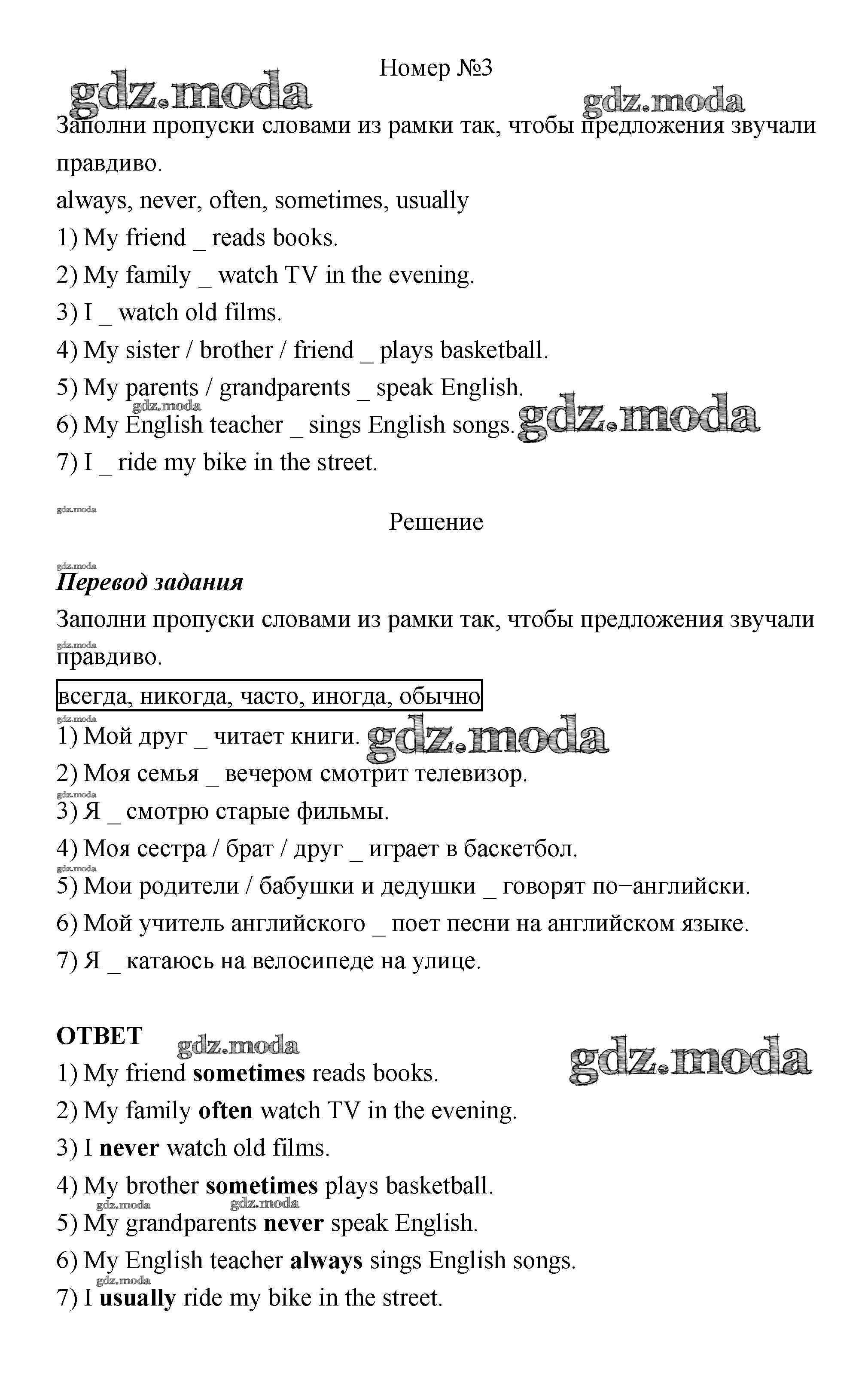 ГДЗ решение к заданию № 3 Английский язык 4 класс рабочая тетрадь Афанасьева О. В. Дрофа 2016 ФГОС бесплатно на гдз.мода!