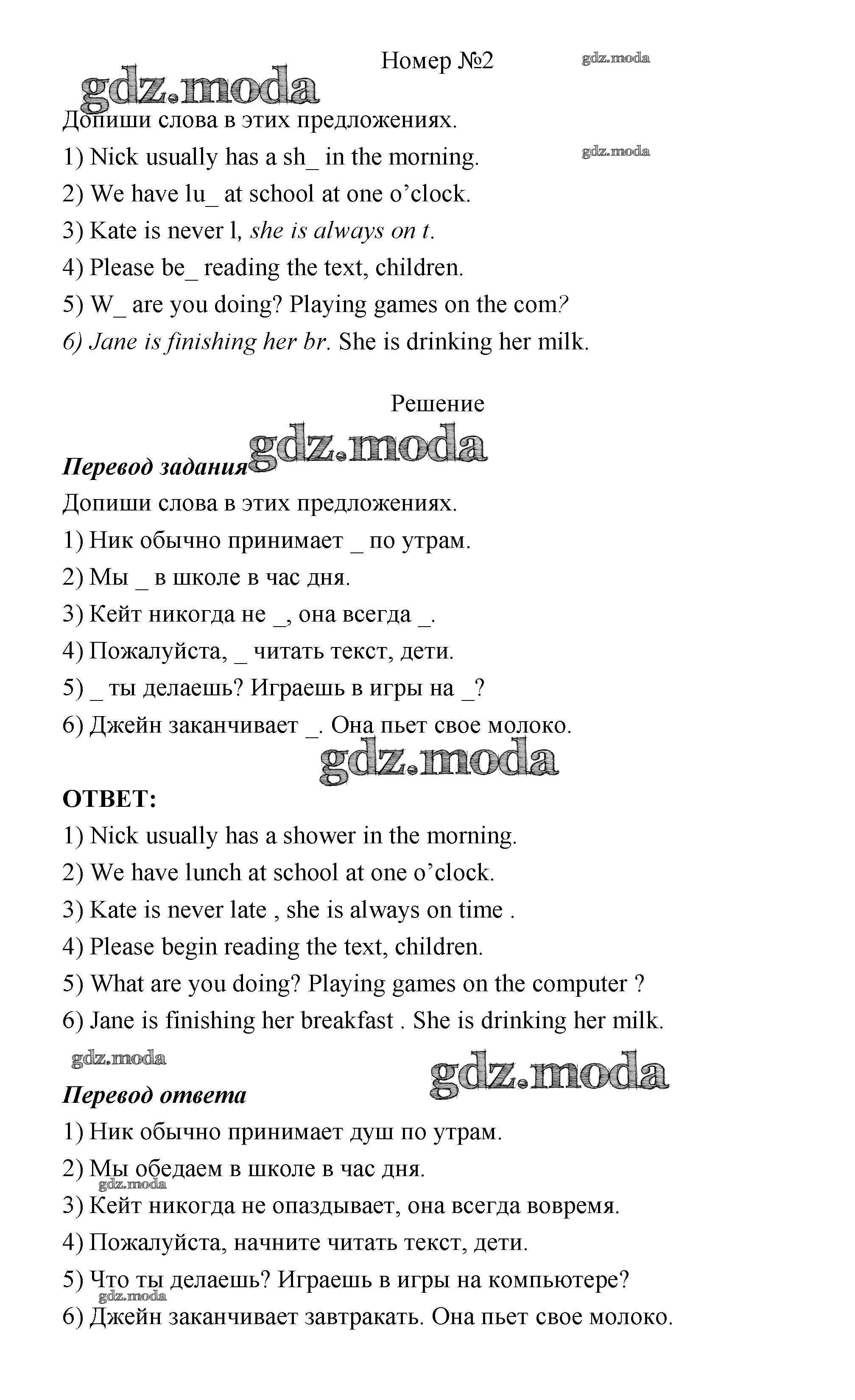 ГДЗ решение к заданию № 2 Английский язык 4 класс рабочая тетрадь Афанасьева О. В. Дрофа 2016 ФГОС бесплатно на гдз.мода!