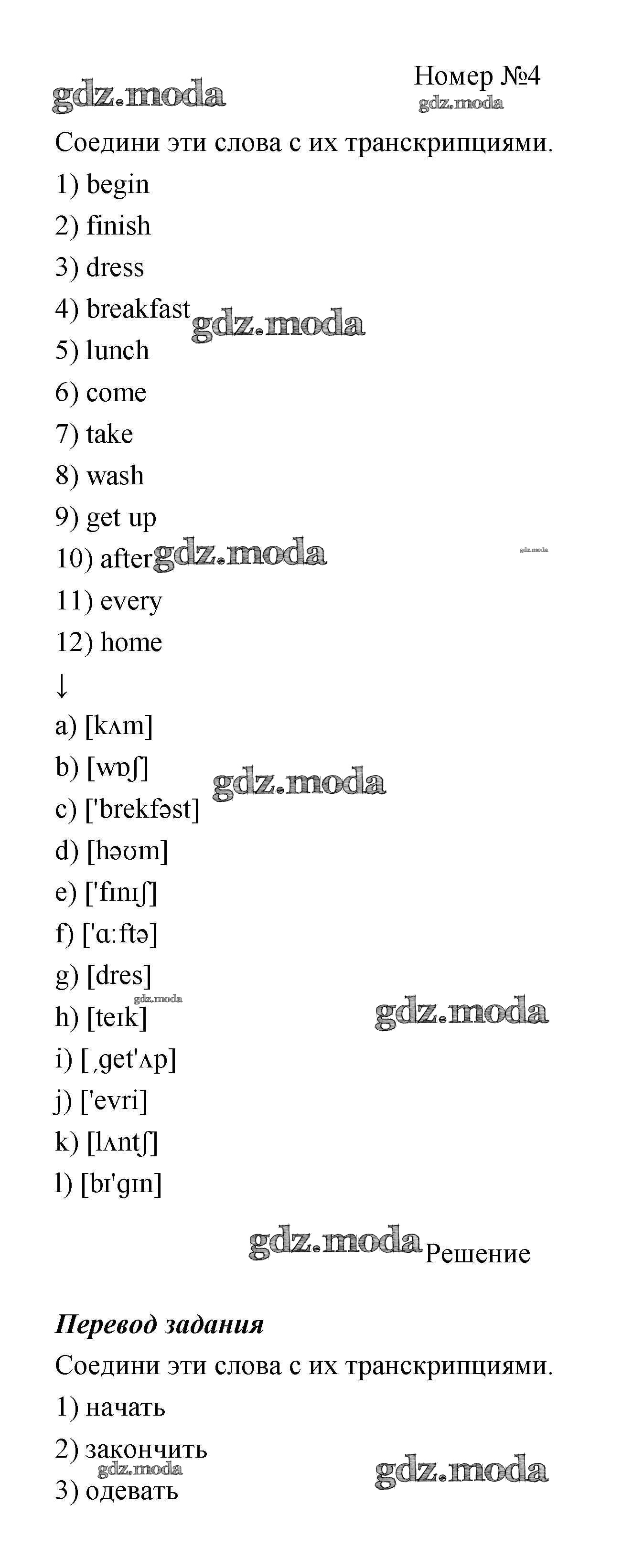 ГДЗ решение к заданию № 4 Английский язык 4 класс рабочая тетрадь Афанасьева О. В. Дрофа 2016 ФГОС бесплатно на гдз.мода!