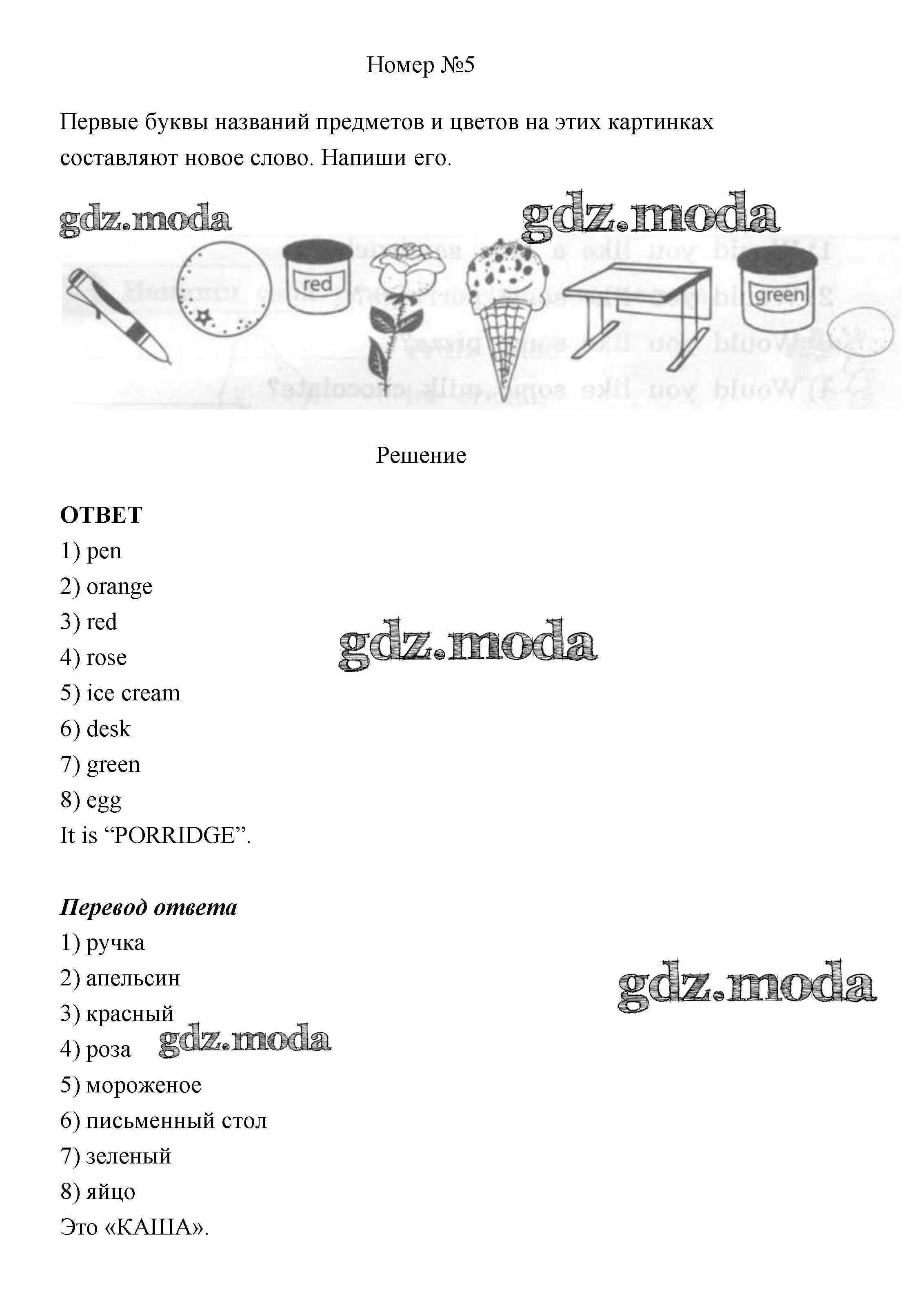ГДЗ решение к заданию № 5 Английский язык 4 класс рабочая тетрадь Афанасьева О. В. Дрофа 2016 ФГОС бесплатно на гдз.мода!