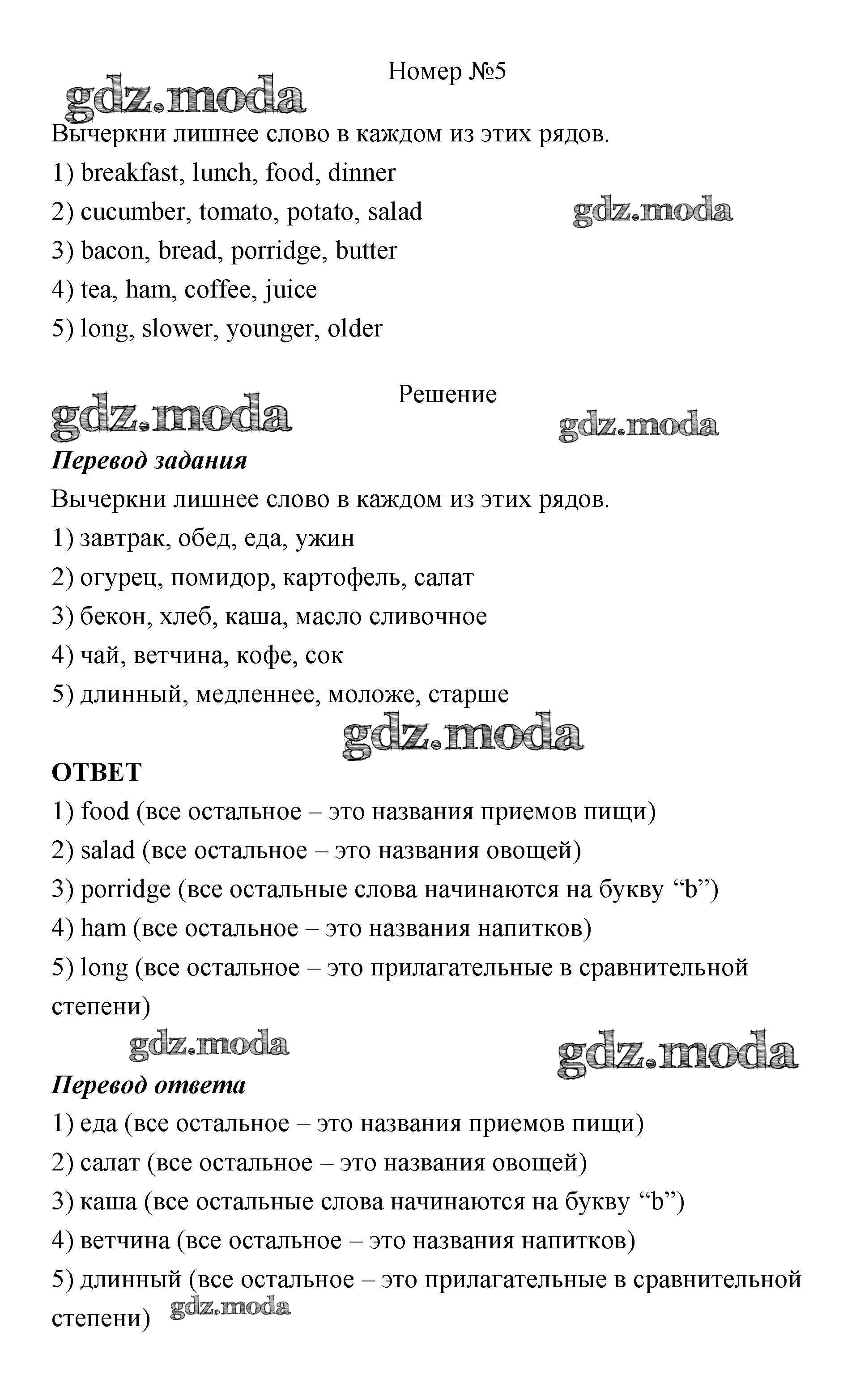 ГДЗ решение к заданию № 5 Английский язык 4 класс рабочая тетрадь Афанасьева О. В. Дрофа 2016 ФГОС бесплатно на гдз.мода!