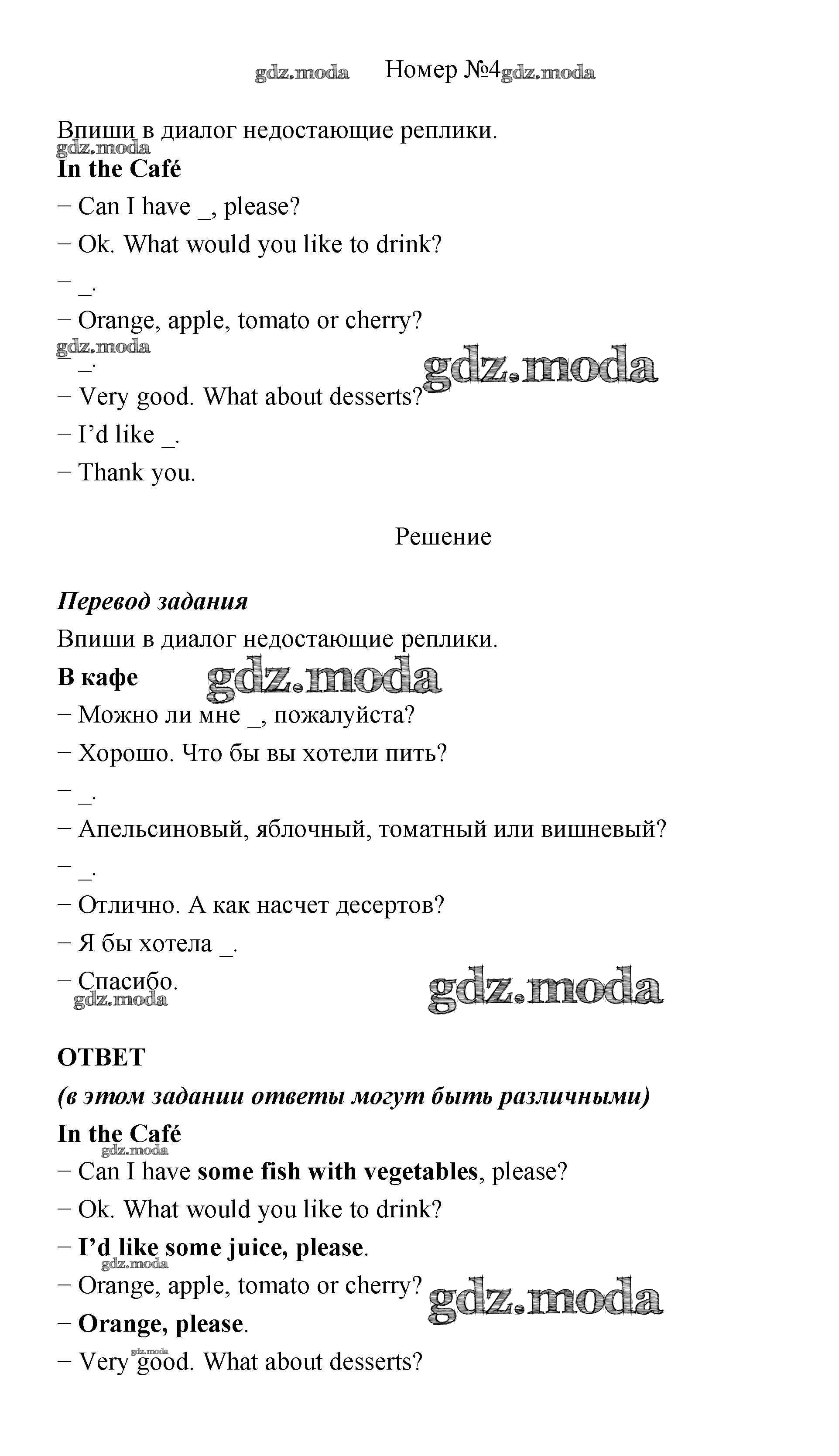 ГДЗ решение к заданию № 4 Английский язык 4 класс рабочая тетрадь Афанасьева О. В. Дрофа 2016 ФГОС бесплатно на гдз.мода!