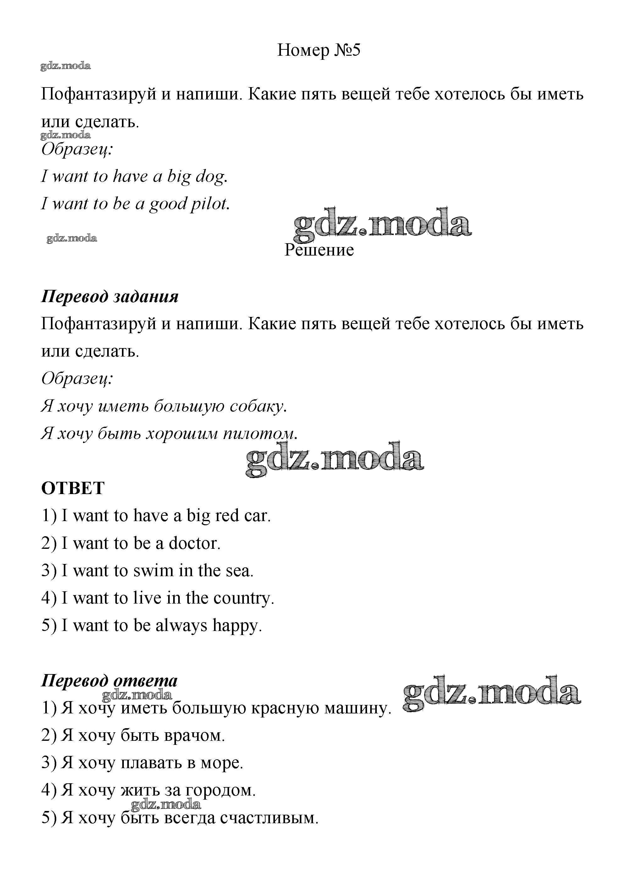 ГДЗ решение к заданию № 5 Английский язык 4 класс рабочая тетрадь Афанасьева О. В. Дрофа 2016 ФГОС бесплатно на гдз.мода!