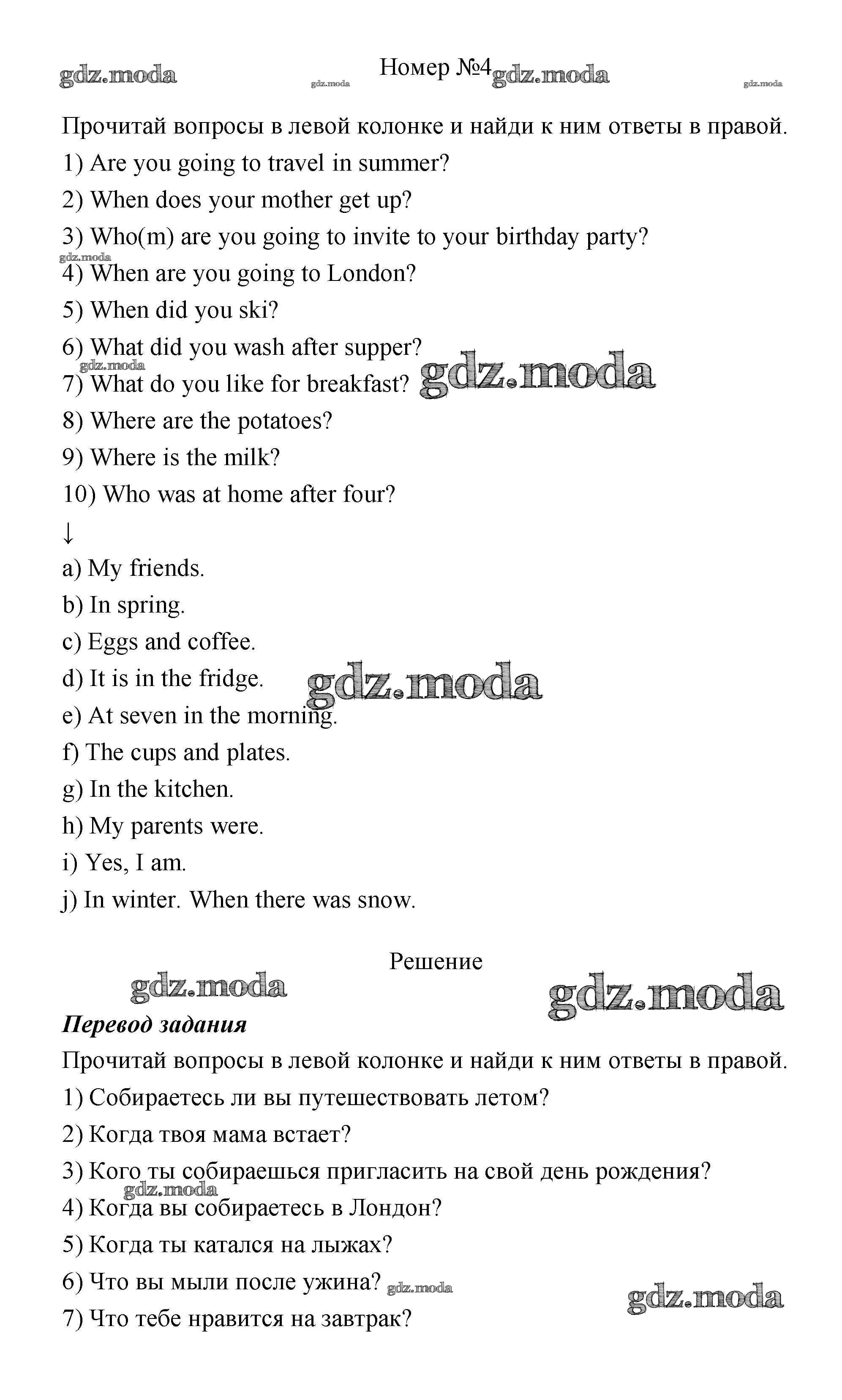 ГДЗ решение к заданию № 4 Английский язык 4 класс рабочая тетрадь Афанасьева О. В. Дрофа 2016 ФГОС бесплатно на гдз.мода!