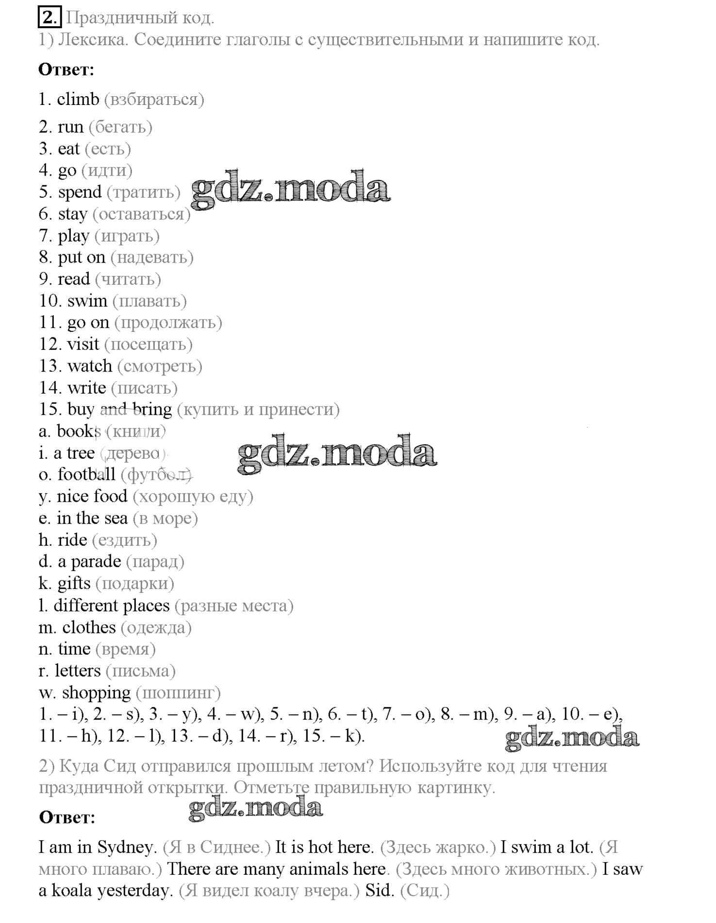 ГДЗ решение к заданию № 2 Английский язык 4 класс рабочая тетрадь Кузовлёв В.П. Просвещение 2013 ФГОС бесплатно на гдз.мода!