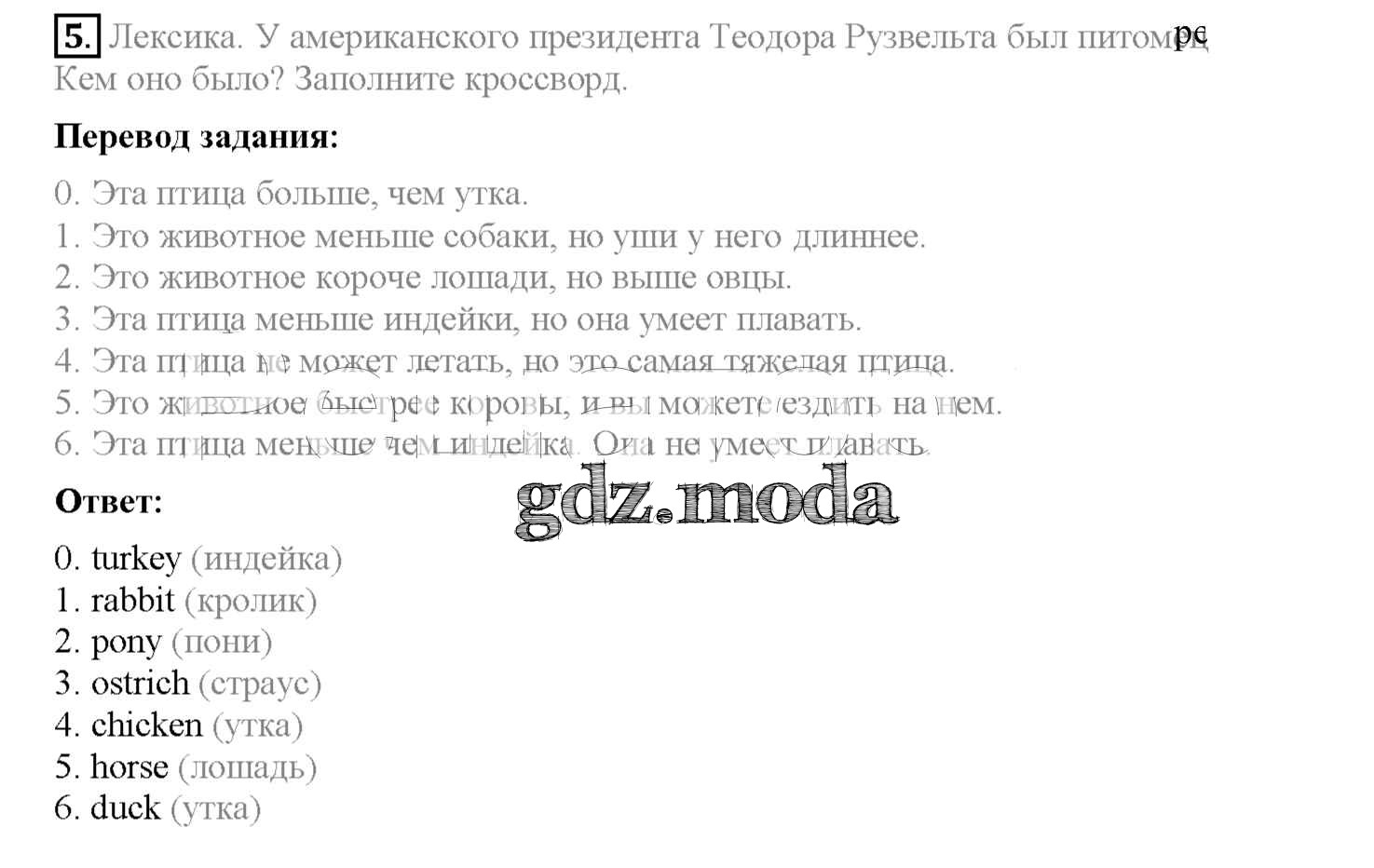 ОТВЕТ на задание № 5 Рабочая тетрадь по Английскому языку 4 класс Кузовлёв