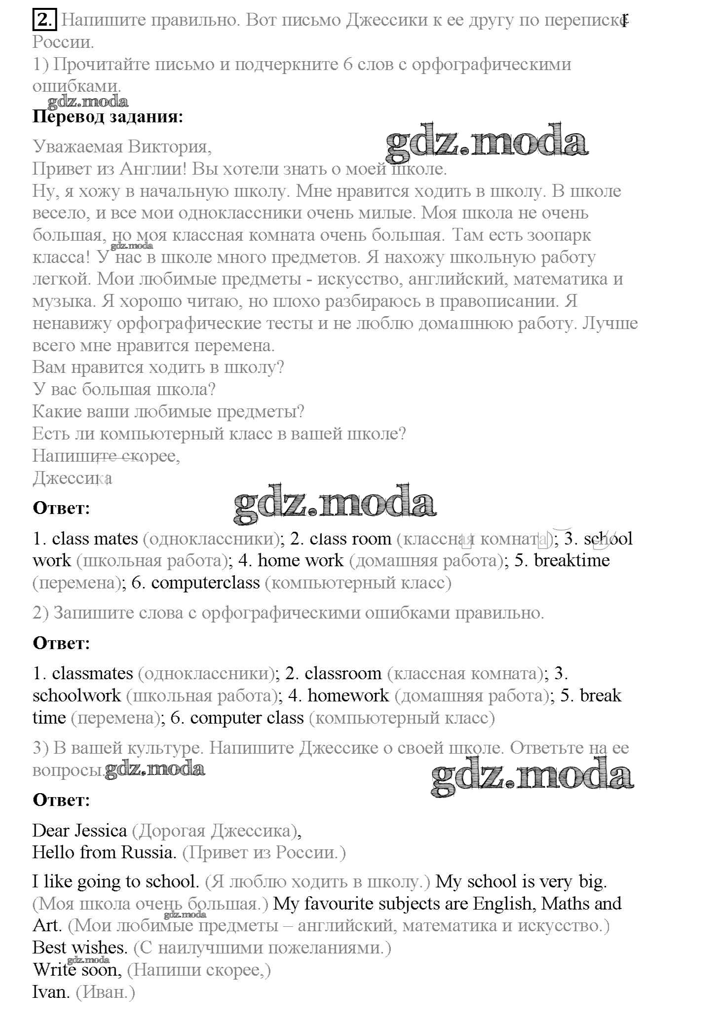 ГДЗ решение к заданию № 2 Английский язык 4 класс рабочая тетрадь Кузовлёв В.П. Просвещение 2013 ФГОС бесплатно на гдз.мода!