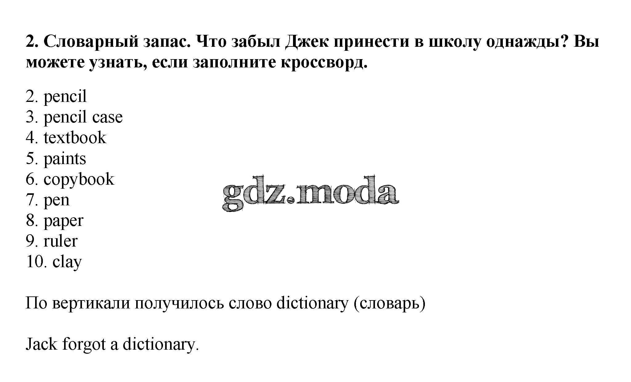 ОТВЕТ на задание № 2 Рабочая тетрадь по Английскому языку 4 класс Кузовлёв