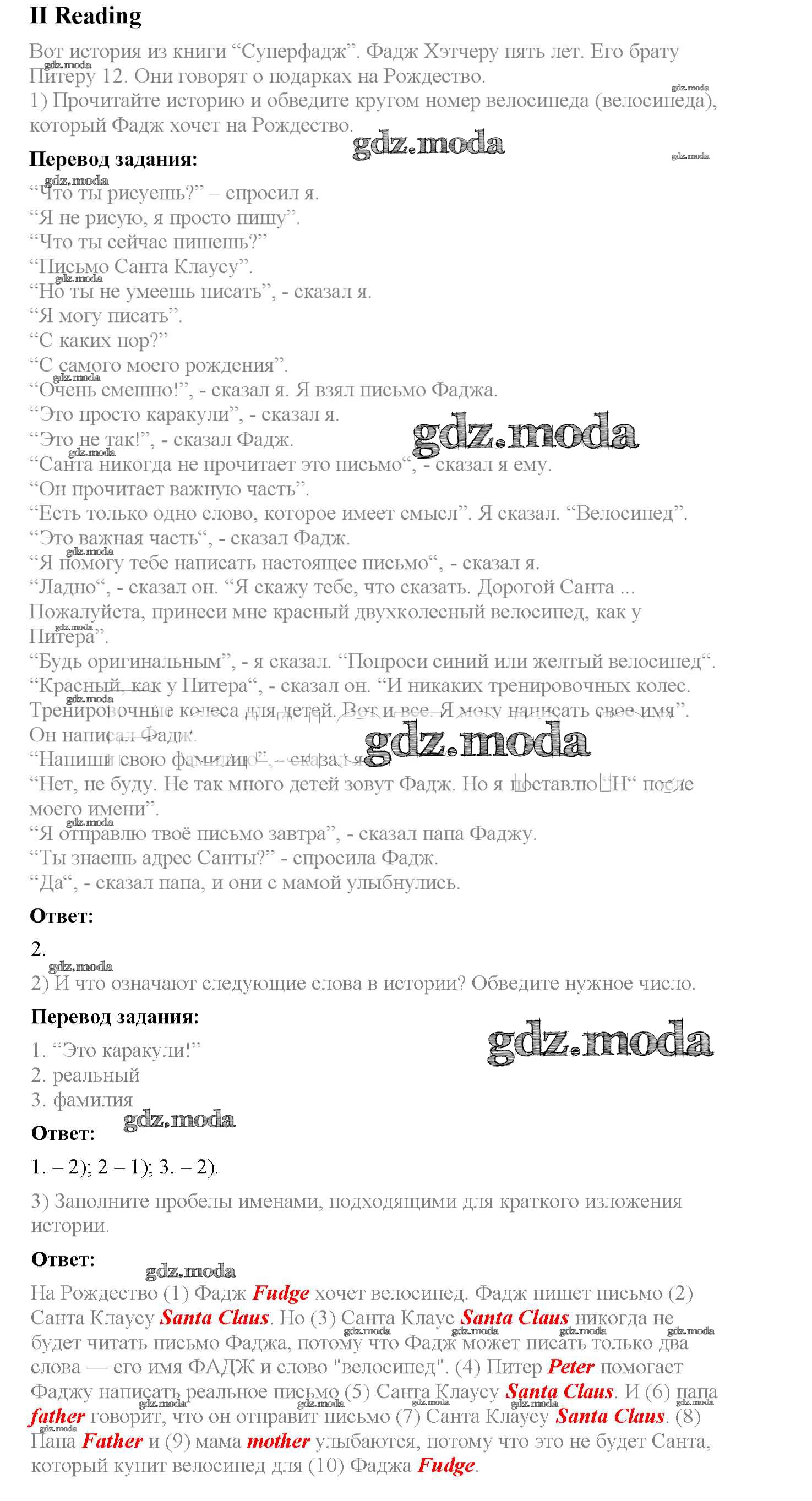 ОТВЕТ на задание № Reading Рабочая тетрадь по Английскому языку 4 класс Кузовлёв