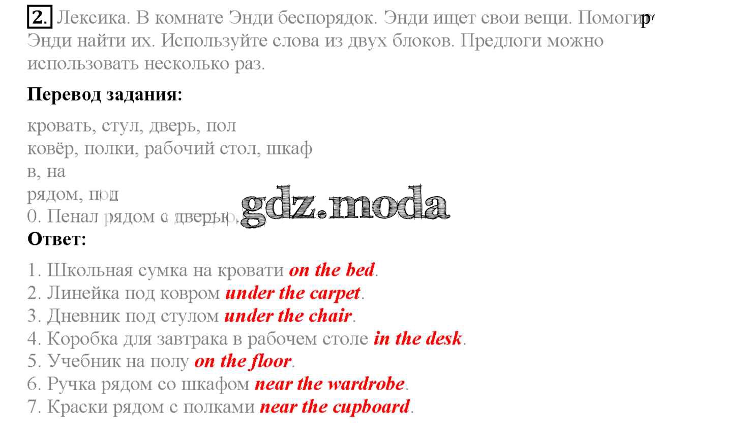 ГДЗ решение к заданию № 2 Английский язык 4 класс рабочая тетрадь Кузовлёв В.П. Просвещение 2013 ФГОС бесплатно на гдз.мода!