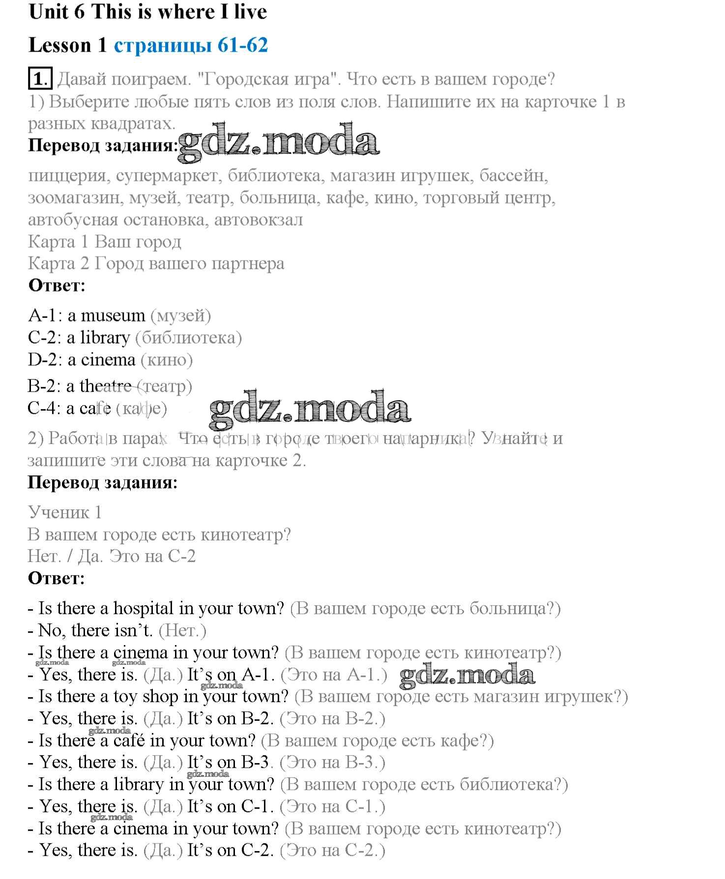 ОТВЕТ на задание № 1 Рабочая тетрадь по Английскому языку 4 класс Кузовлёв