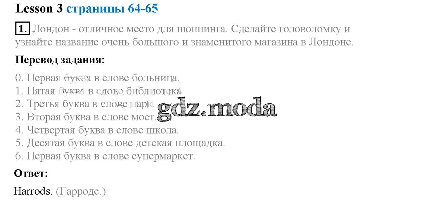 ОТВЕТ на задание № 1 Рабочая тетрадь по Английскому языку 4 класс Кузовлёв