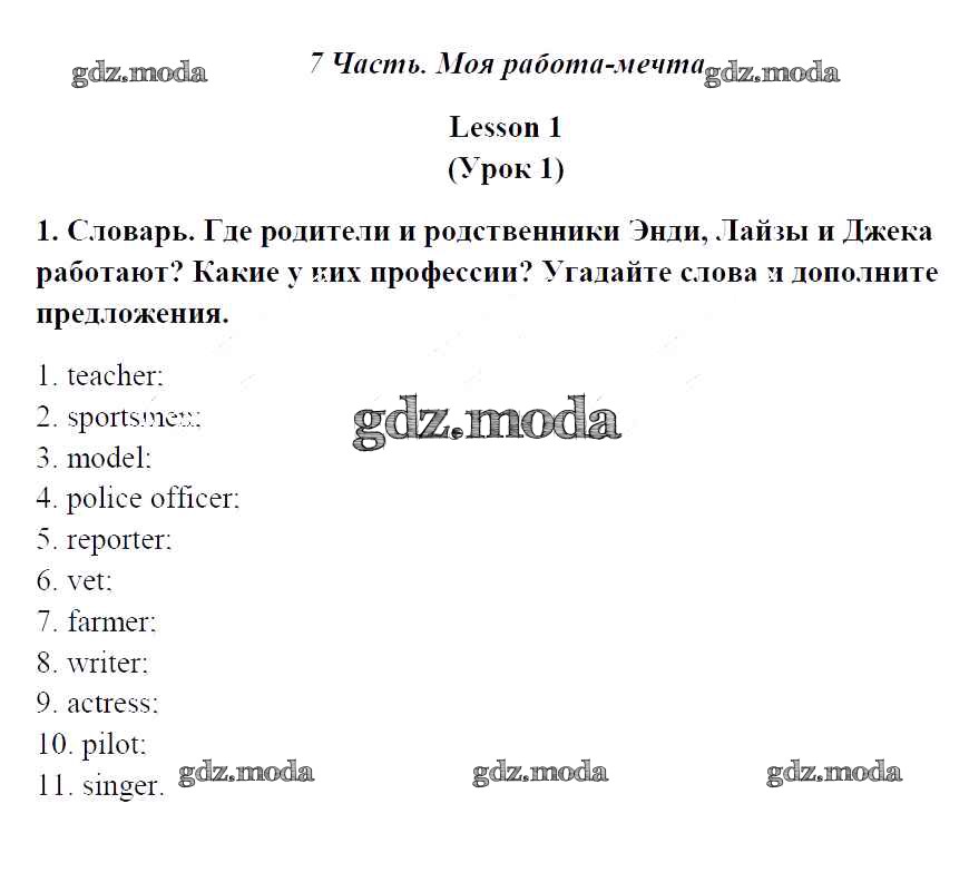 ГДЗ решение к заданию № 1 Английский язык 4 класс рабочая тетрадь Кузовлёв В.П. Просвещение 2013 ФГОС бесплатно на гдз.мода!