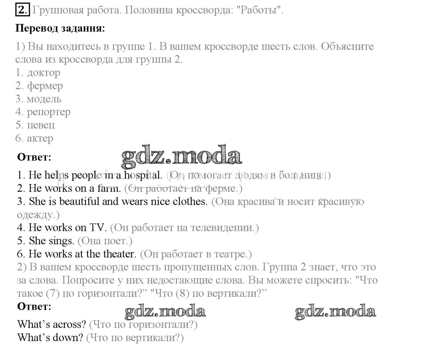 ГДЗ решение к заданию № 2 Английский язык 4 класс рабочая тетрадь Кузовлёв В.П. Просвещение 2013 ФГОС бесплатно на гдз.мода!