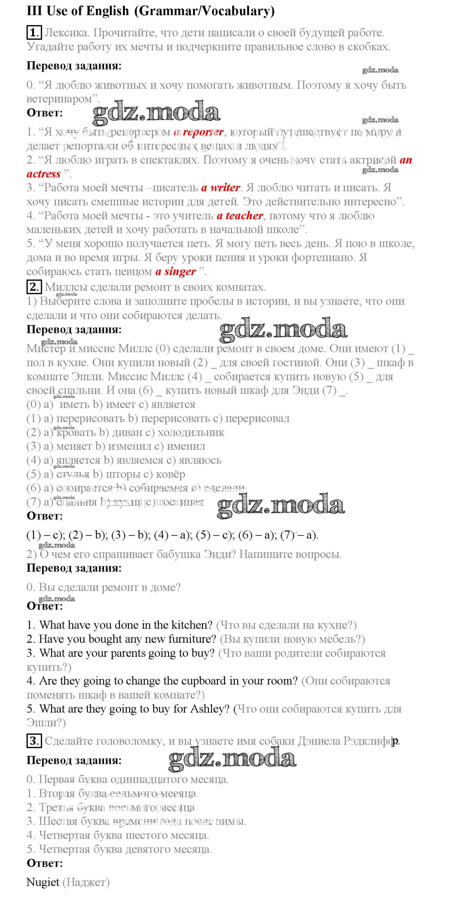 ОТВЕТ на задание № Use of English Рабочая тетрадь по Английскому языку 4 класс Кузовлёв