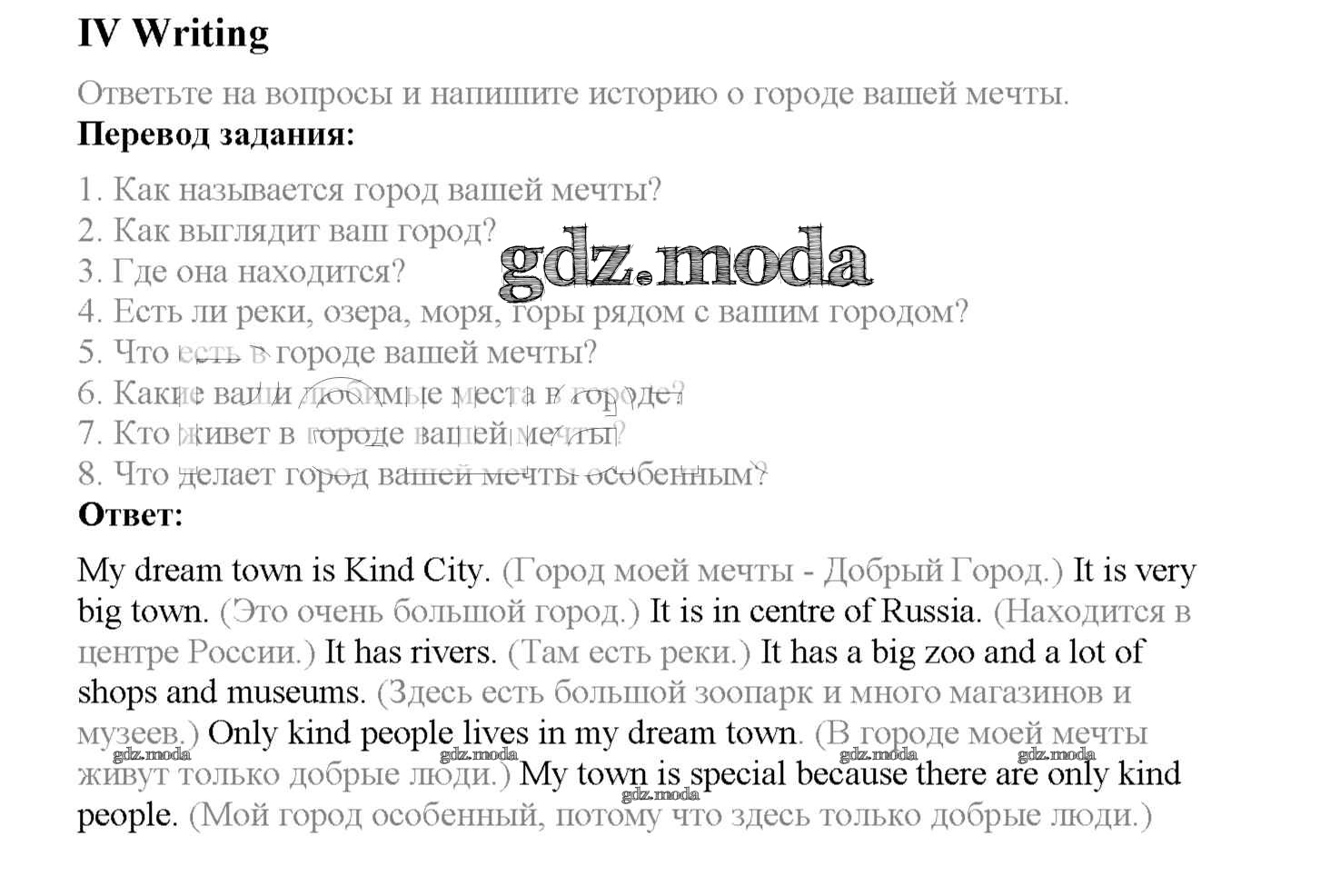 ОТВЕТ на задание № Writing Рабочая тетрадь по Английскому языку 4 класс Кузовлёв