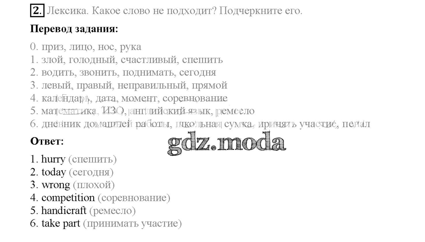 ОТВЕТ на задание № 2 Рабочая тетрадь по Английскому языку 4 класс Кузовлёв