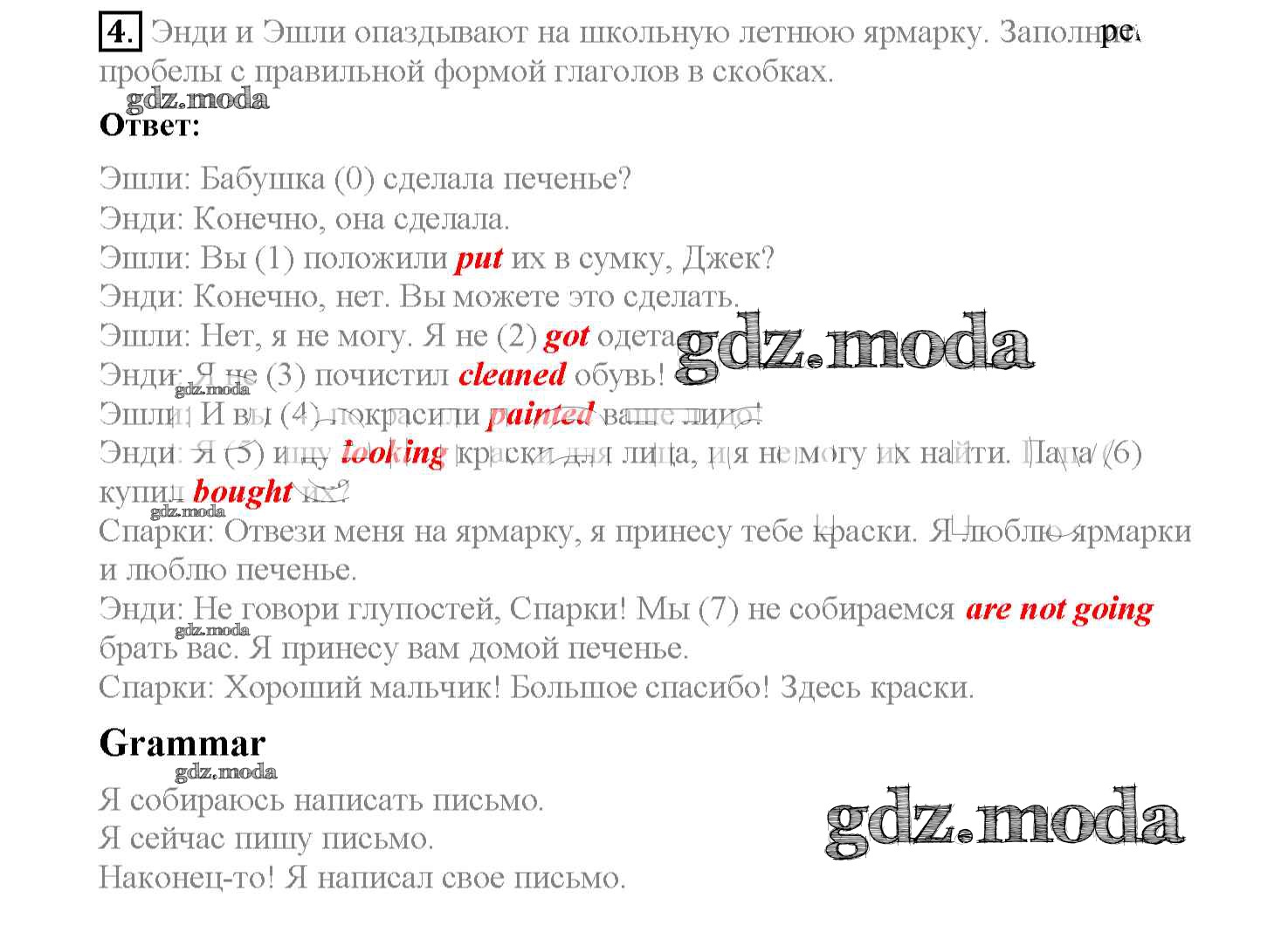 ОТВЕТ на задание № 4 Рабочая тетрадь по Английскому языку 4 класс Кузовлёв