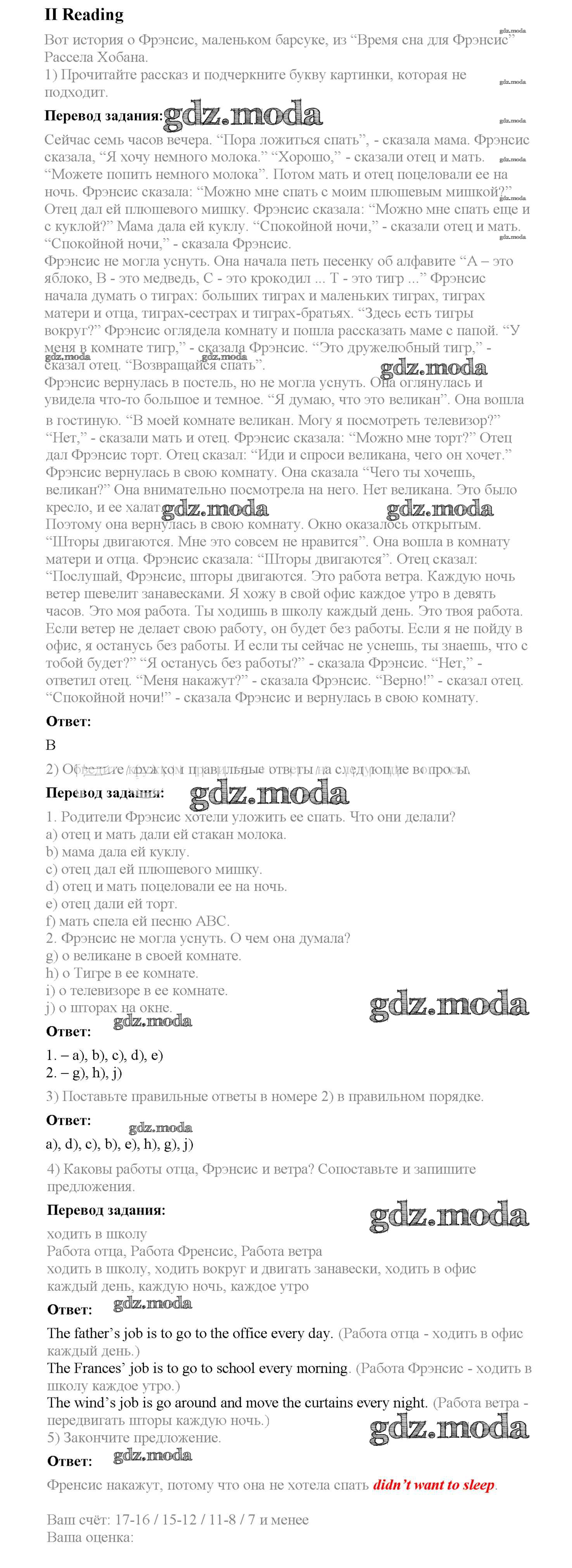 ОТВЕТ на задание № Reading Рабочая тетрадь по Английскому языку 4 класс Кузовлёв