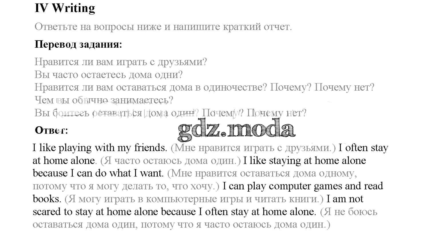ОТВЕТ на задание № Writing Рабочая тетрадь по Английскому языку 4 класс Кузовлёв