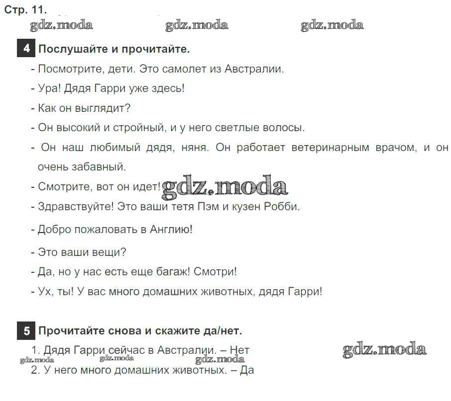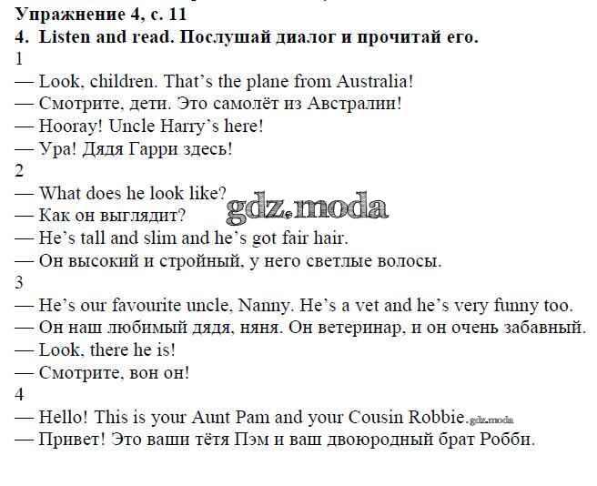 ОТВЕТ на задание № страница 11 Учебник по Английскому языку 4 класс Быкова Spotlight