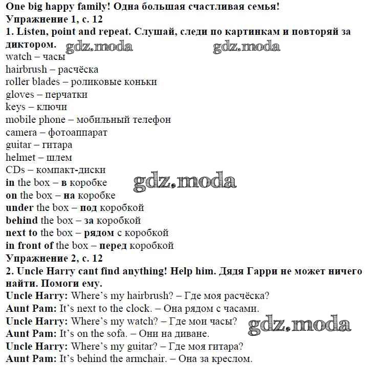 ОТВЕТ на задание № страница 12 Учебник по Английскому языку 4 класс Быкова Spotlight