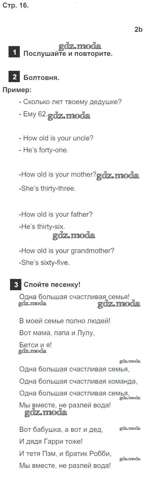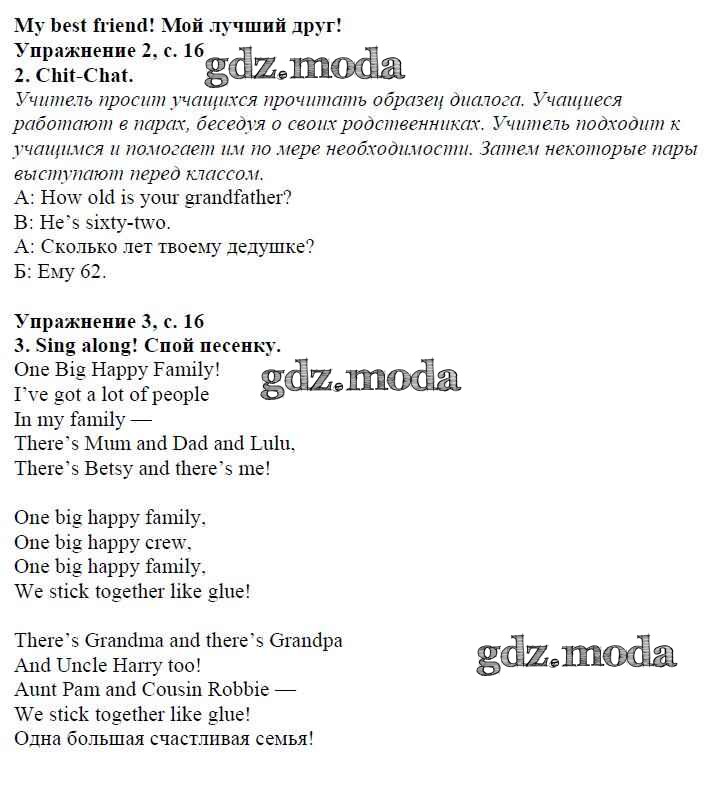 ОТВЕТ на задание № страница 16 Учебник по Английскому языку 4 класс Быкова Spotlight