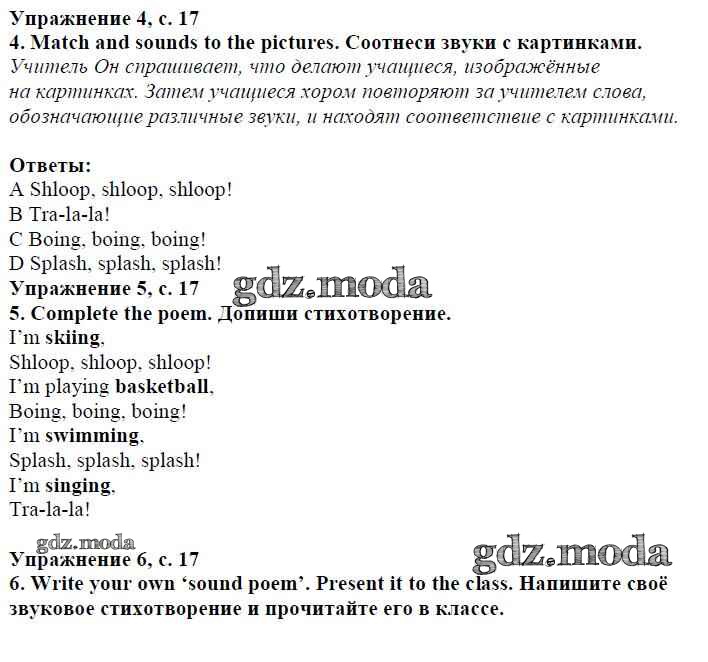 ОТВЕТ на задание № страница 17 Учебник по Английскому языку 4 класс Быкова Spotlight