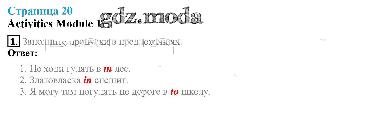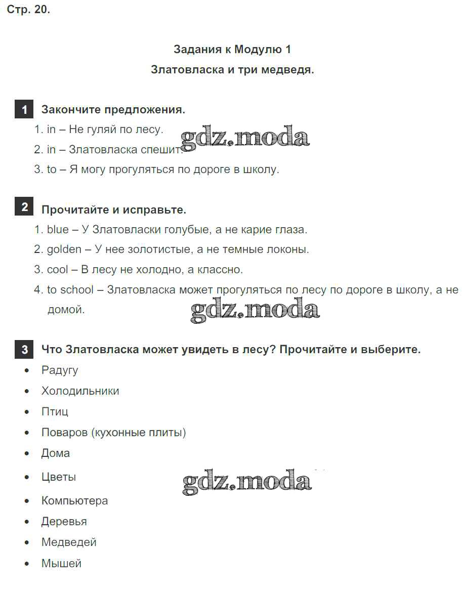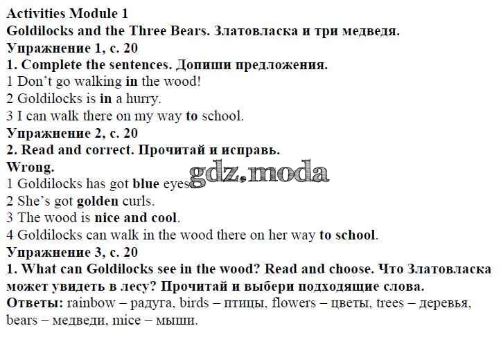 ОТВЕТ на задание № страница 20 Учебник по Английскому языку 4 класс Быкова Spotlight