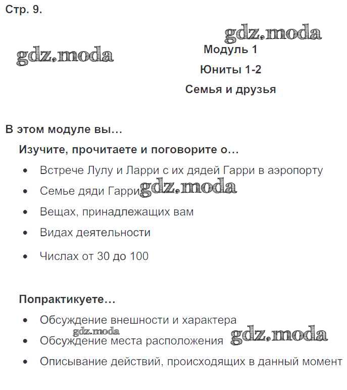 ОТВЕТ на задание № страница 9 Учебник по Английскому языку 4 класс Быкова Spotlight
