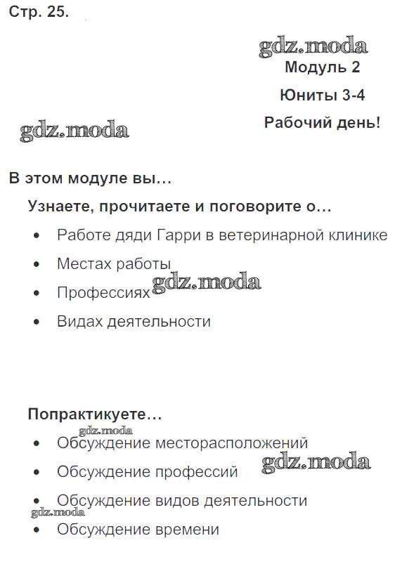 ОТВЕТ на задание № страница 25 Учебник по Английскому языку 4 класс Быкова Spotlight