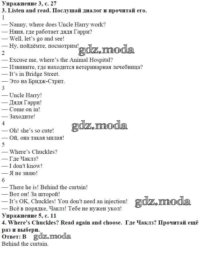 ОТВЕТ на задание № страница 27 Учебник по Английскому языку 4 класс Быкова Spotlight