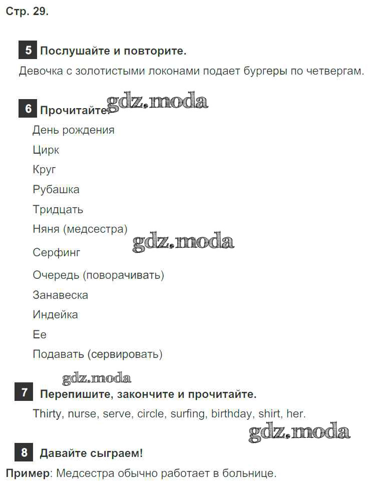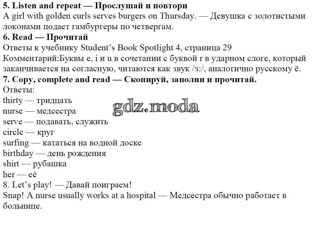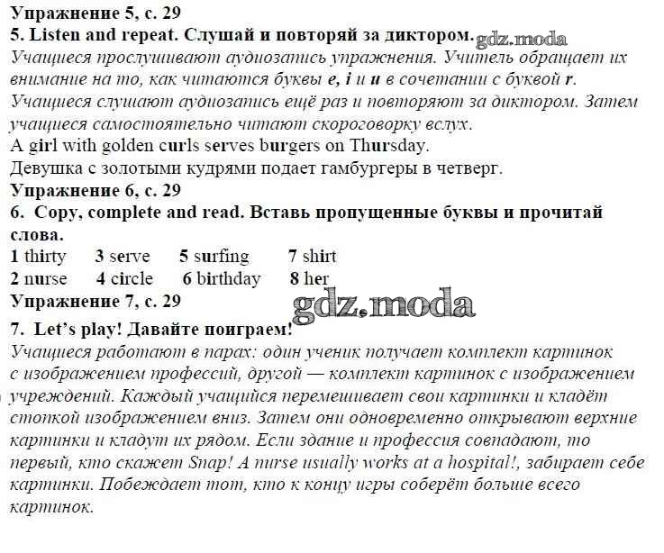 ОТВЕТ на задание № страница 29 Учебник по Английскому языку 4 класс Быкова Spotlight