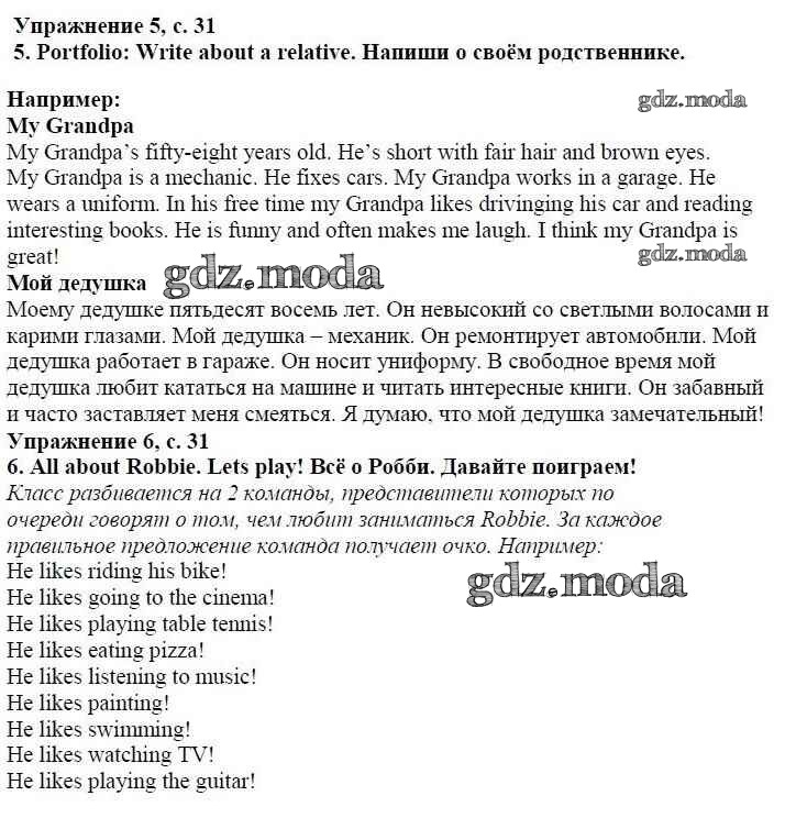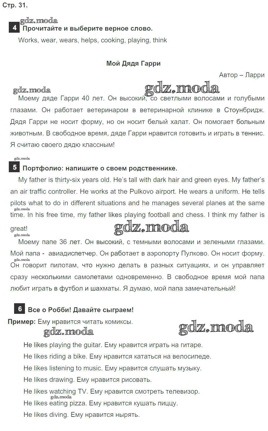 ОТВЕТ на задание № страница 31 Учебник по Английскому языку 4 класс Быкова Spotlight