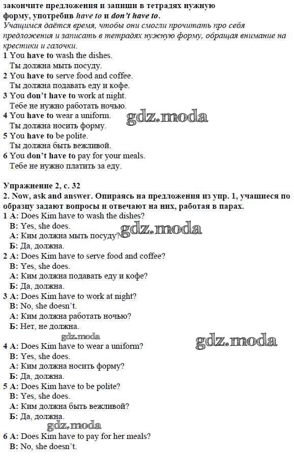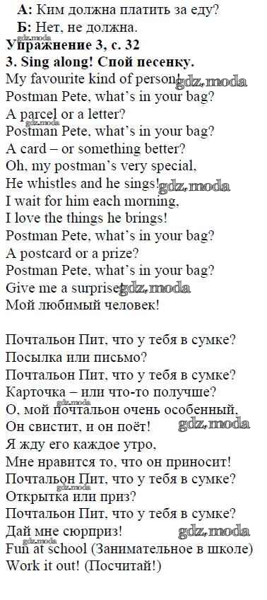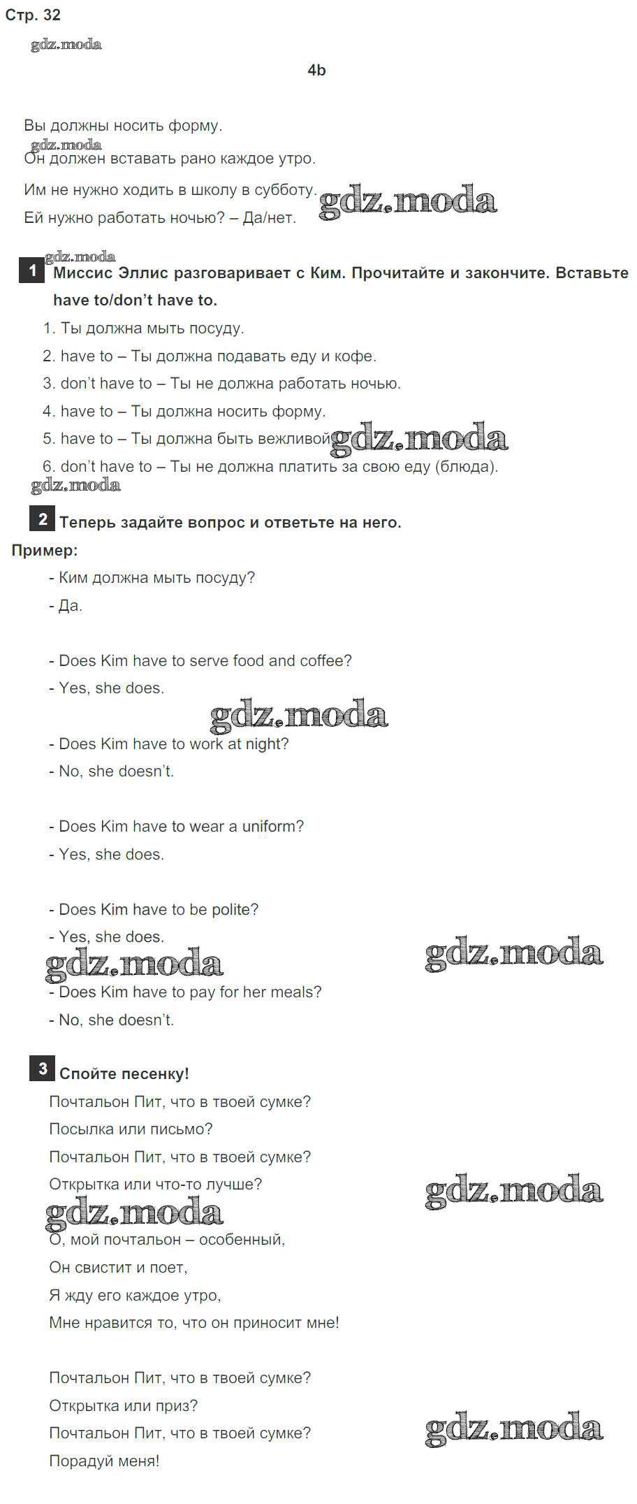 ОТВЕТ на задание № страница 32 Учебник по Английскому языку 4 класс Быкова Spotlight