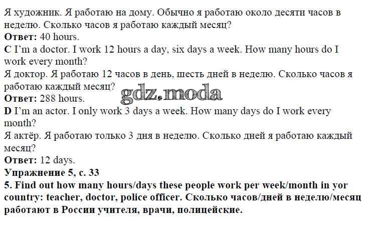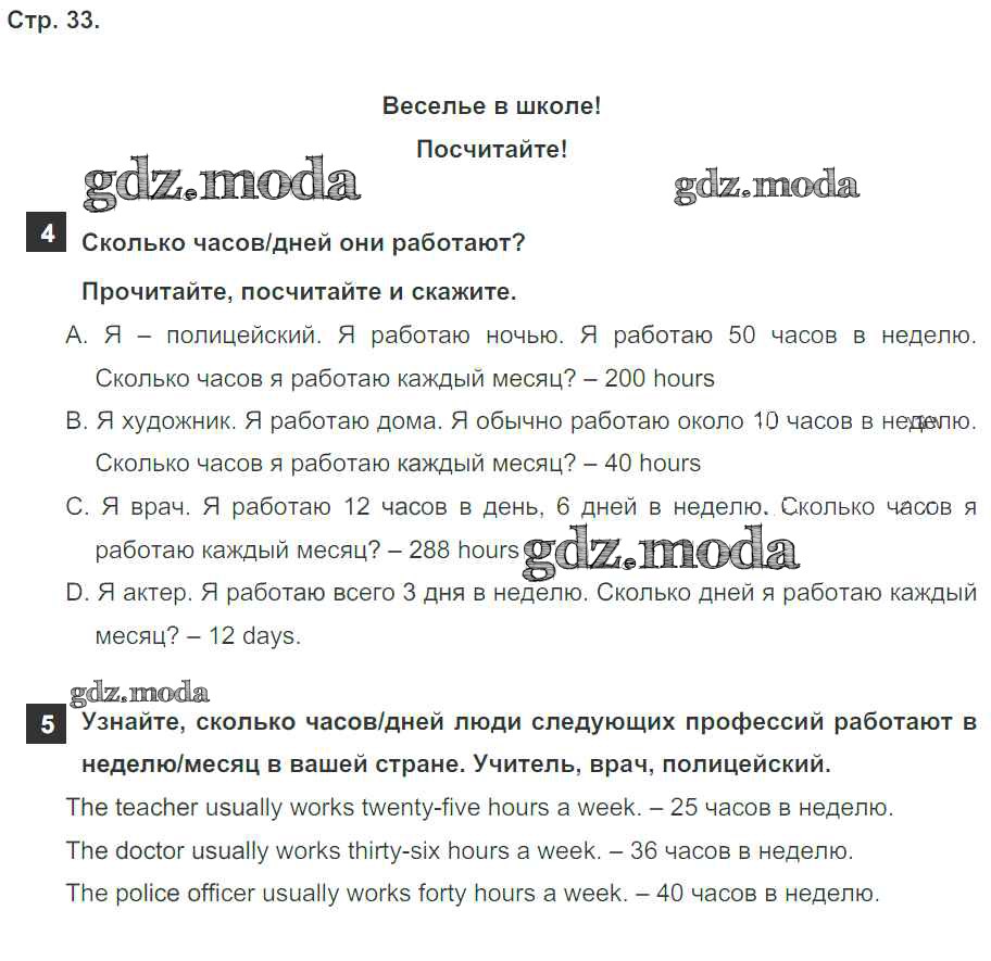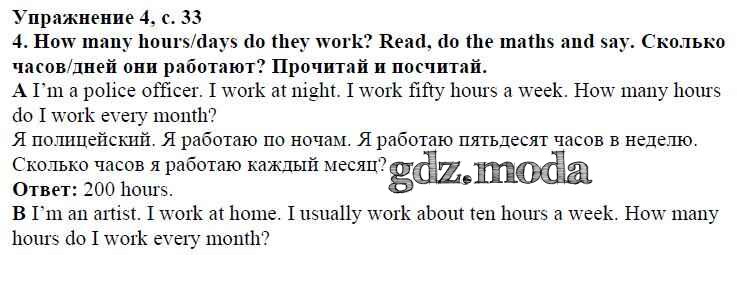 ОТВЕТ на задание № страница 33 Учебник по Английскому языку 4 класс Быкова Spotlight