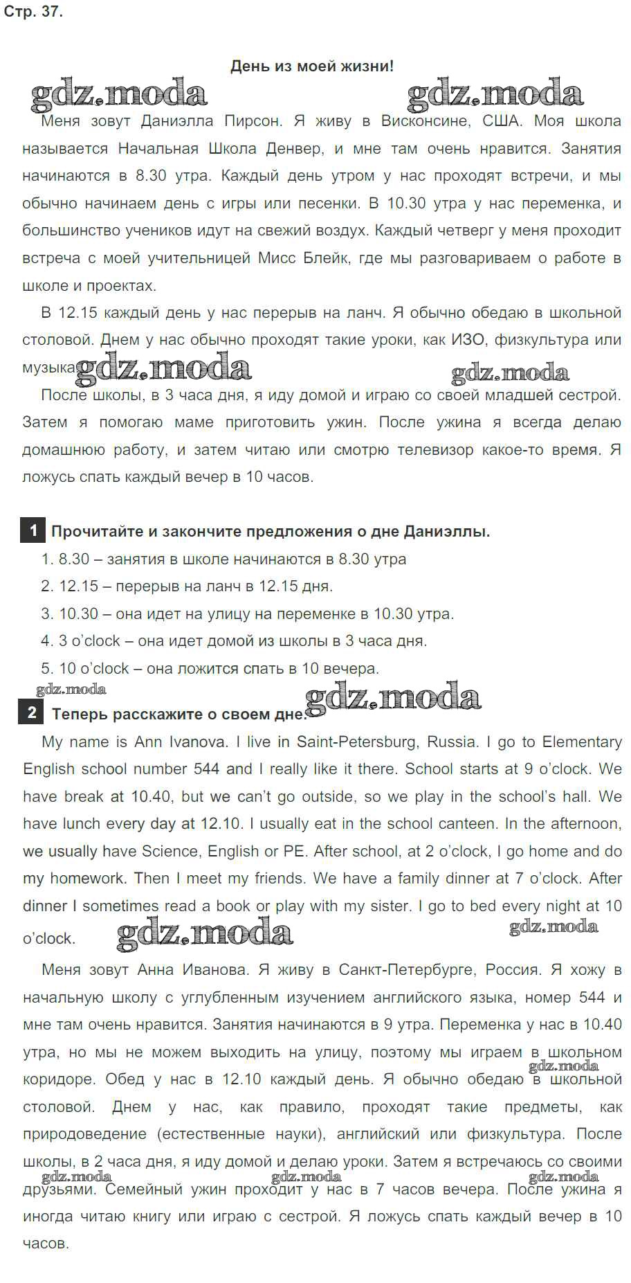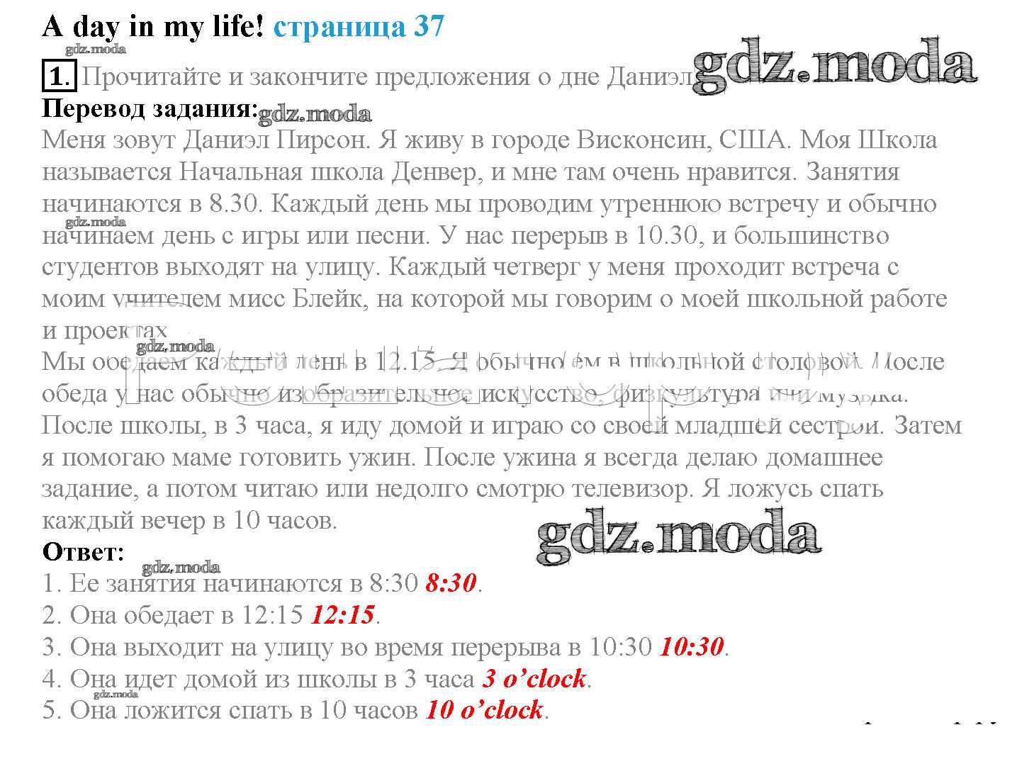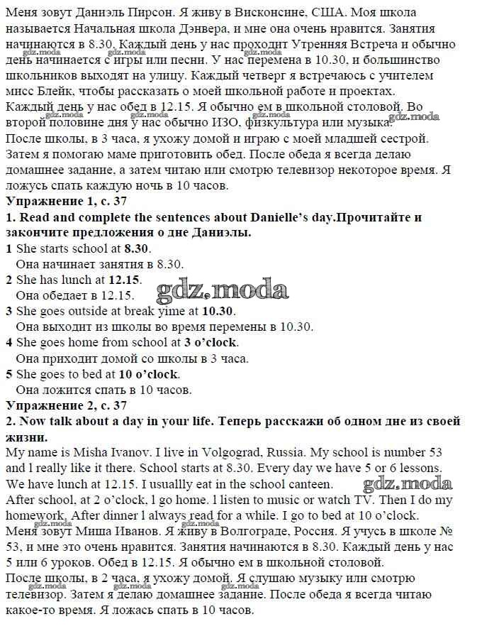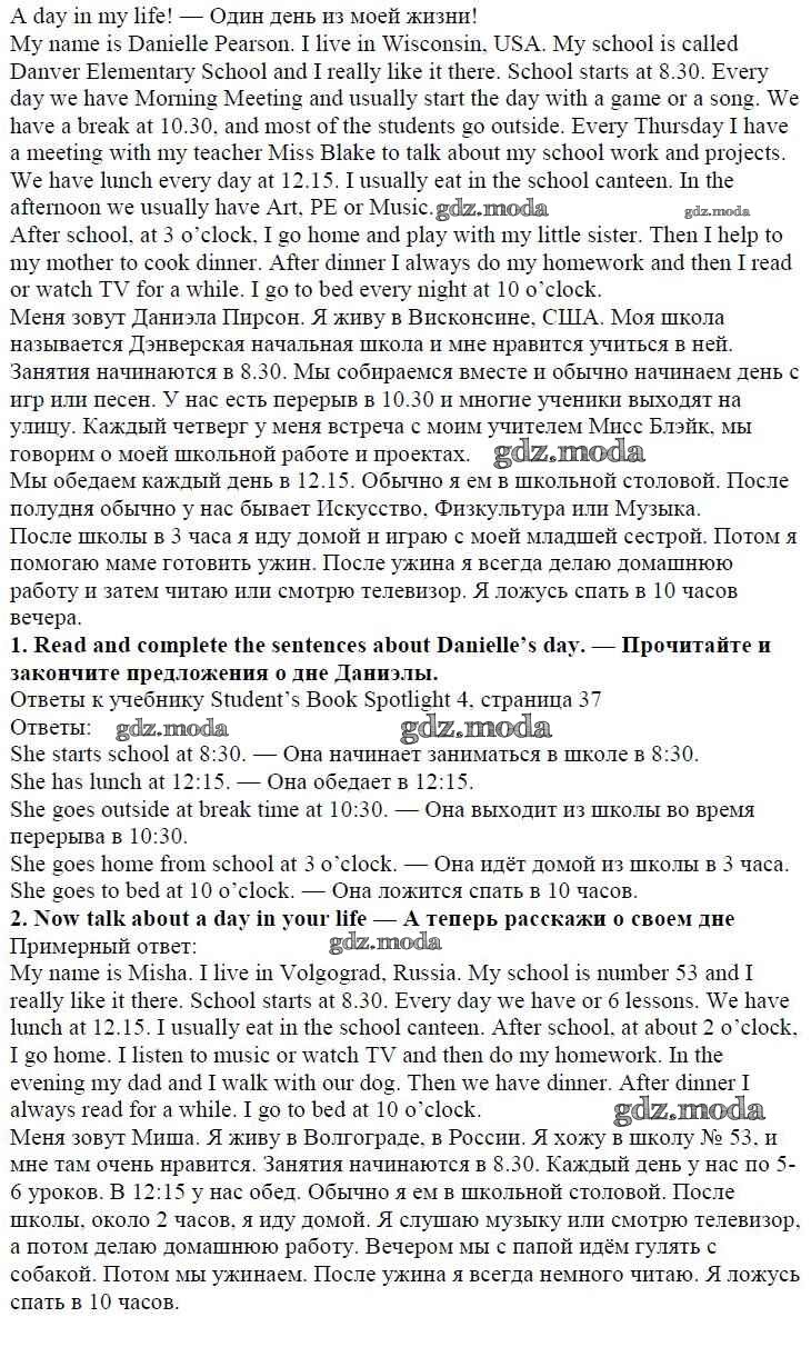 ОТВЕТ на задание № страница 37 Учебник по Английскому языку 4 класс Быкова Spotlight