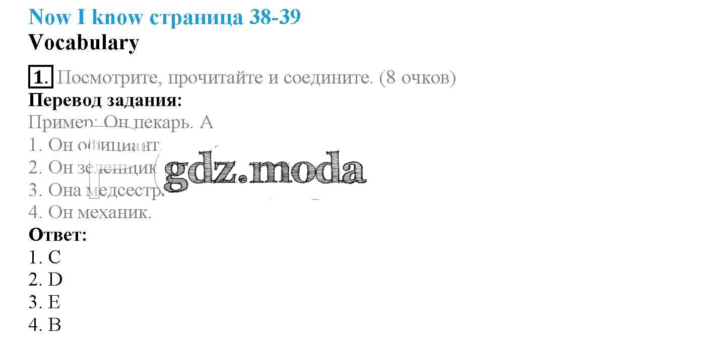 ОТВЕТ на задание № страница 38 Учебник по Английскому языку 4 класс Быкова Spotlight