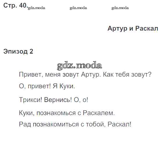 ОТВЕТ на задание № страница 40 Учебник по Английскому языку 4 класс Быкова Spotlight