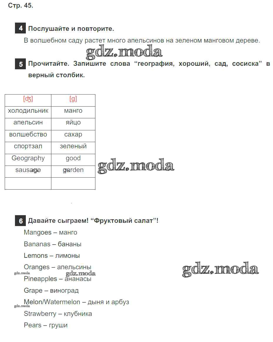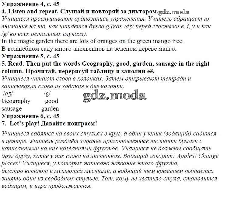ОТВЕТ на задание № страница 45 Учебник по Английскому языку 4 класс Быкова Spotlight