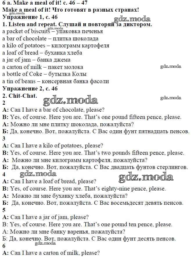 ОТВЕТ на задание № страница 46 Учебник по Английскому языку 4 класс Быкова Spotlight