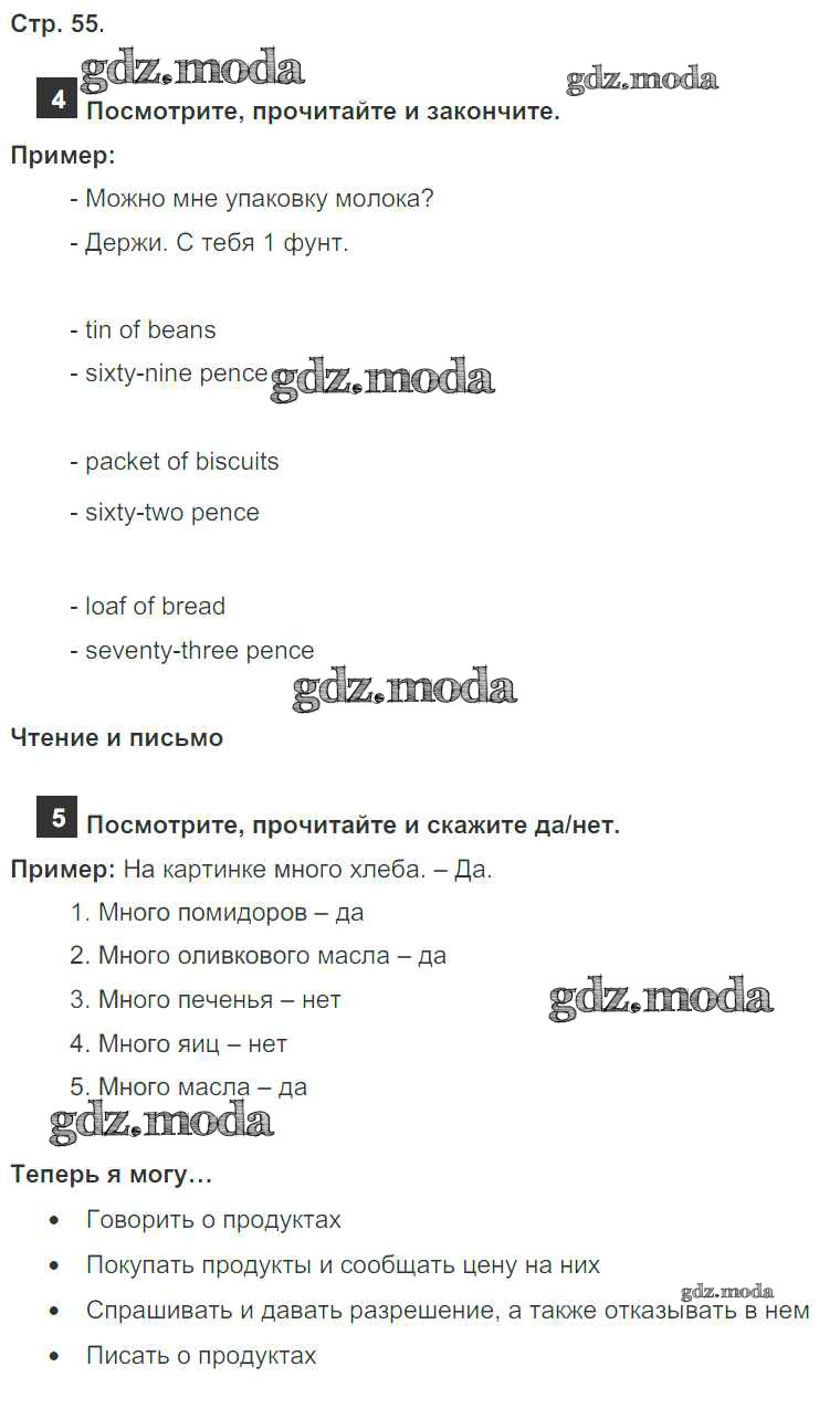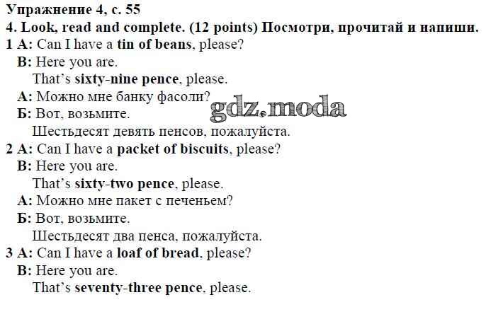 ОТВЕТ на задание № страница 55 Учебник по Английскому языку 4 класс Быкова Spotlight