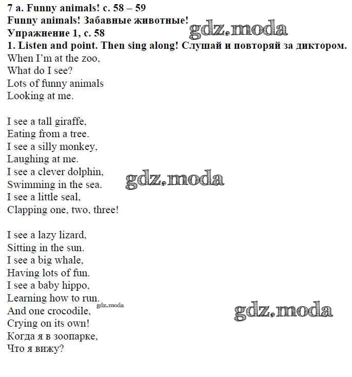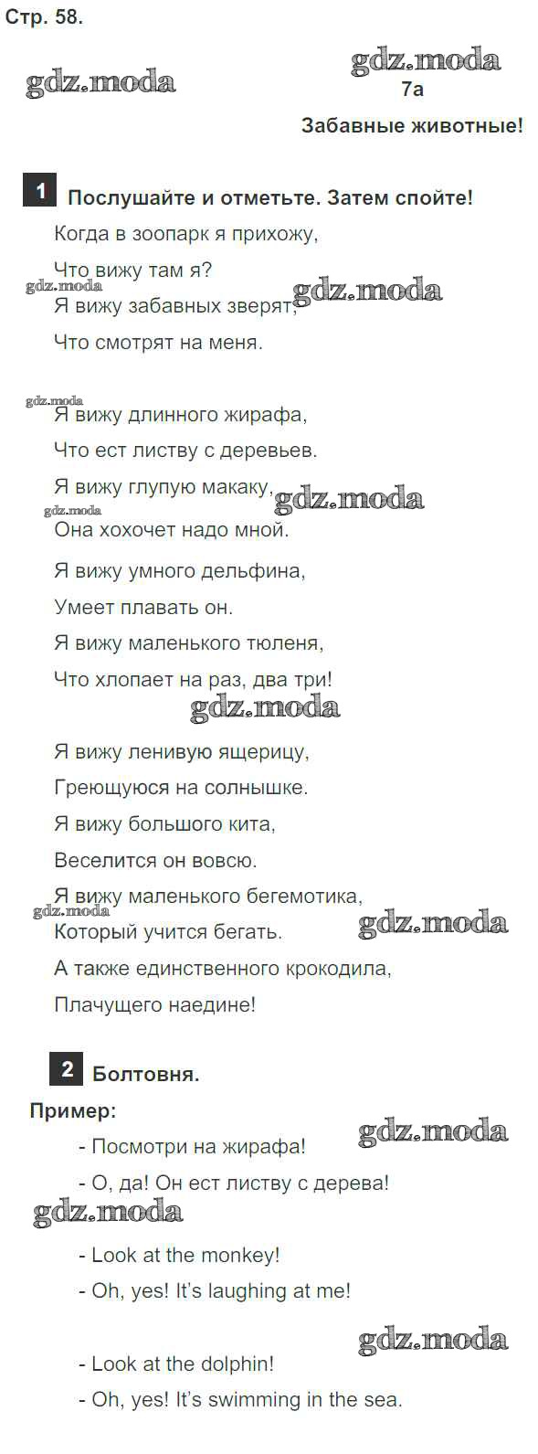 ОТВЕТ на задание № страница 58 Учебник по Английскому языку 4 класс Быкова Spotlight