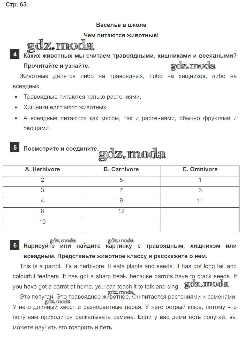 ОТВЕТ на задание № страница 65 Учебник по Английскому языку 4 класс Быкова Spotlight