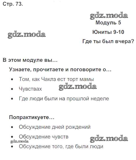 ОТВЕТ на задание № страница 73 Учебник по Английскому языку 4 класс Быкова Spotlight