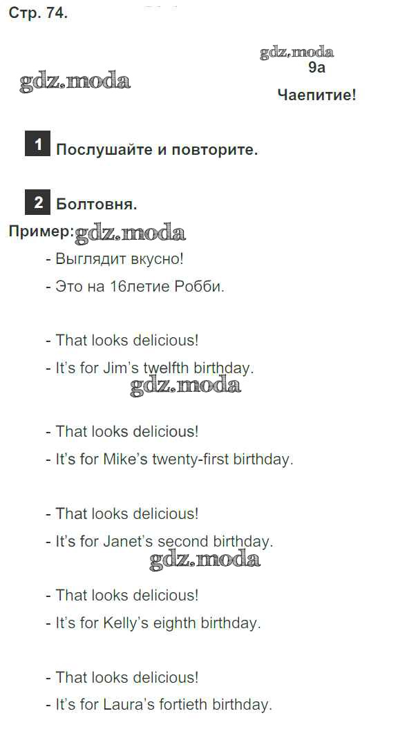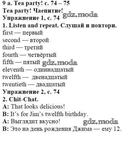 ОТВЕТ на задание № страница 74 Учебник по Английскому языку 4 класс Быкова Spotlight