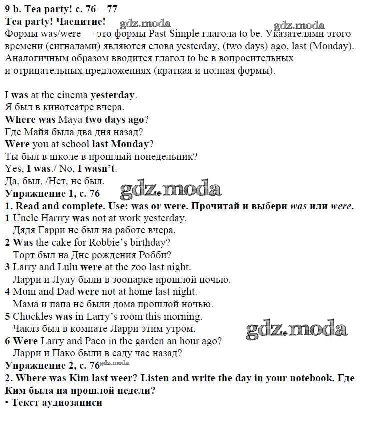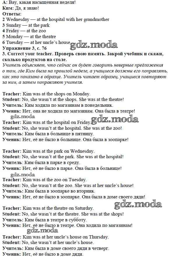 ОТВЕТ на задание № страница 76 Учебник по Английскому языку 4 класс Быкова Spotlight