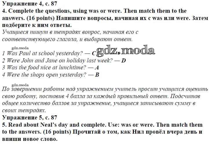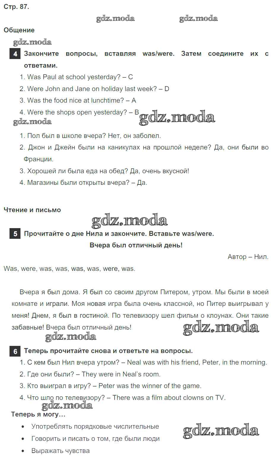 ОТВЕТ на задание № страница 87 Учебник по Английскому языку 4 класс Быкова Spotlight